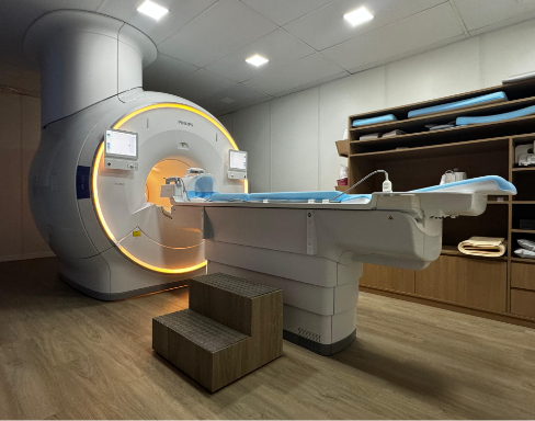Aparelho de ressonância magnética de última geração, PHILIPS MR 5300 1,5T com parque de bobinas flexíveis, permitindo maior adaptação à anatomia de cada paciente. A máquina possui abertura de 70 CM e bordas arredondadas que permitem maior conforto e diminuem a sensação de claustrofobia. Permite ainda, exames de pacientes com sobrepeso, com capacidade de até 250kg.